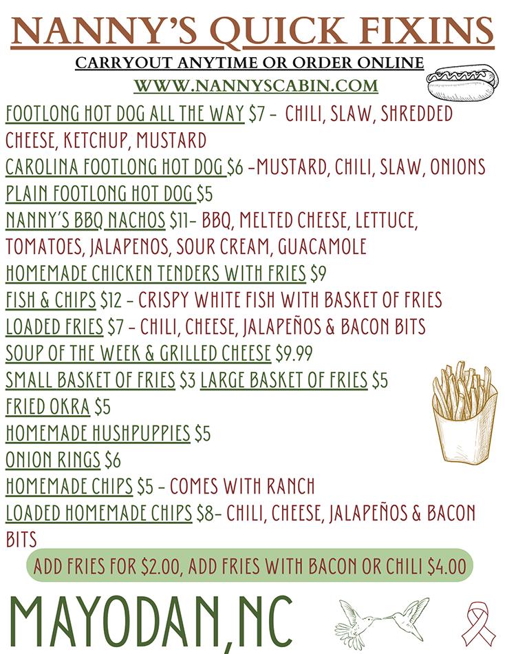 Nanny's Cabin has hand scooped Hershey's Ice Cream